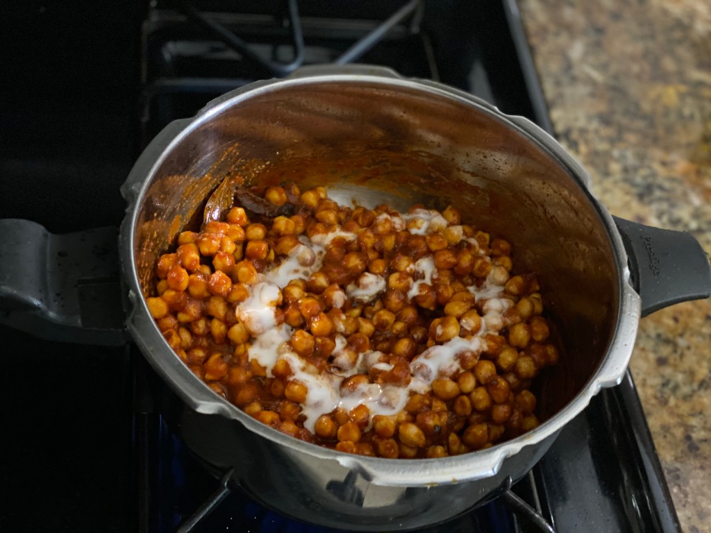 Circumstances like Covid-19 where everyone is locked down and looking to stock up on groceries, this recipe does not require any fresh vegetables, and can be made entirely with ingredients that have a long shelf life making it highly useful for emergency situations. It is very quick to make highly nutritious and yummiee even though there are no fresh vegetables used. This Channa masala goes well with Roti, naan, batura or poori.