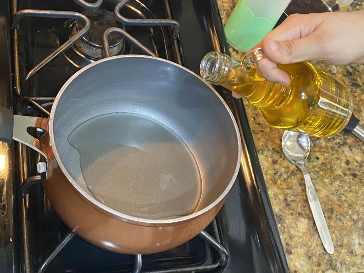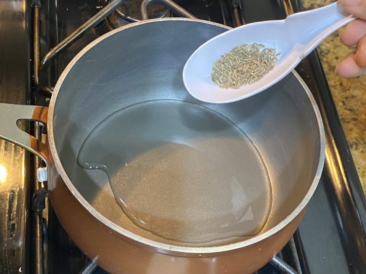 As the oils starts to heat, add cumin seeds.