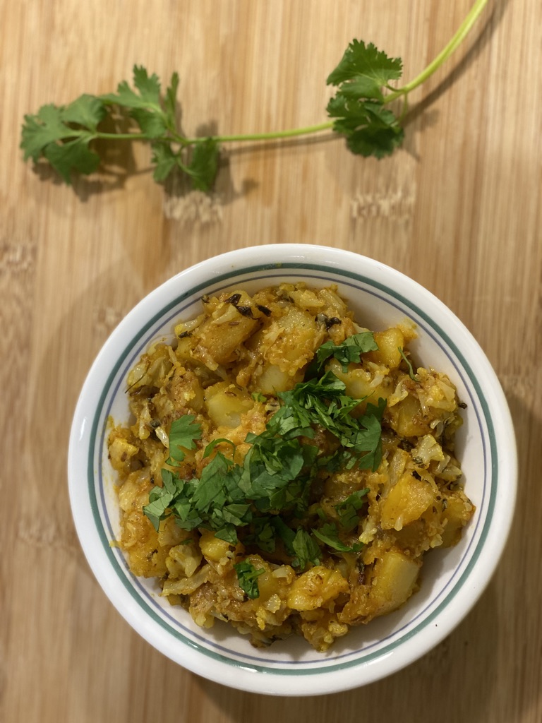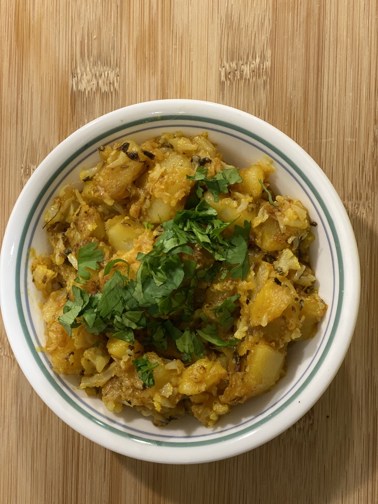 Aloo Gobi is a simple traditional North Indian vegan curry recipe that is very easy to make and a delight to your taste buds. This can be served with roti, naan, poori, basmati rice, jeera rice etc..