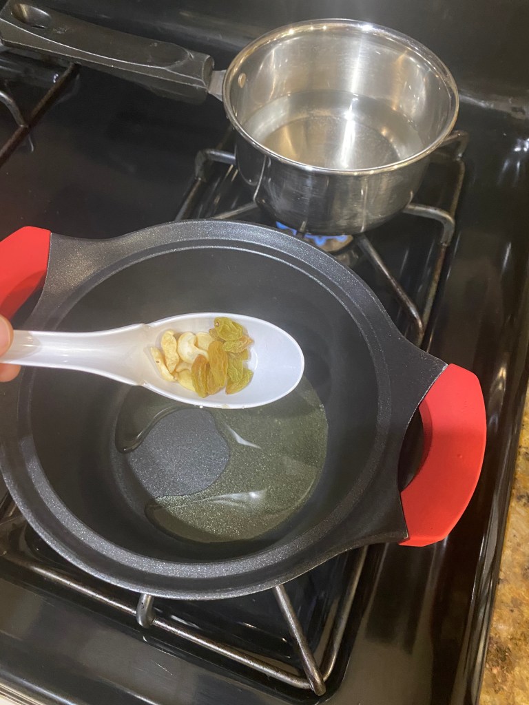 Now in the ghee pan , add dry fruits and roast them slightly.