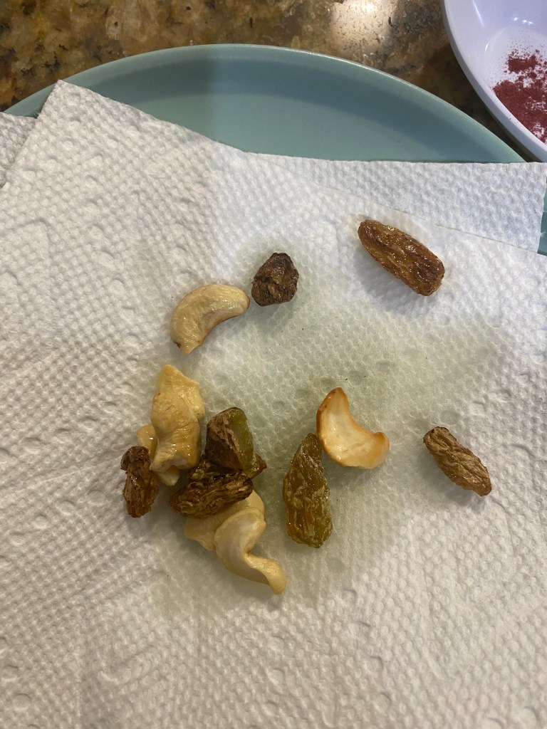 As soon as the dry fruits turn brown , take them out and set them aside .