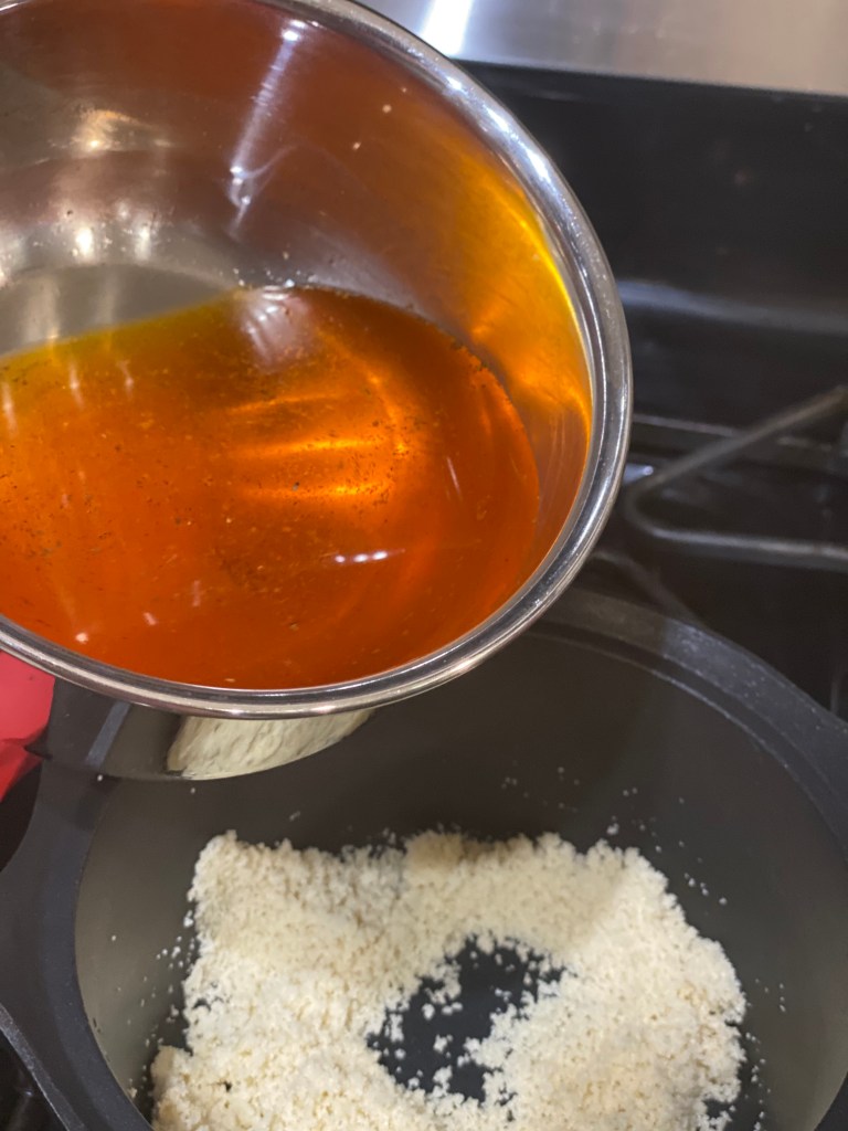 Now add the boiling water to Rava. And continuously stir as it thickens.