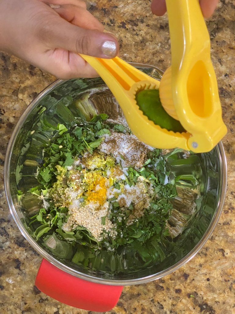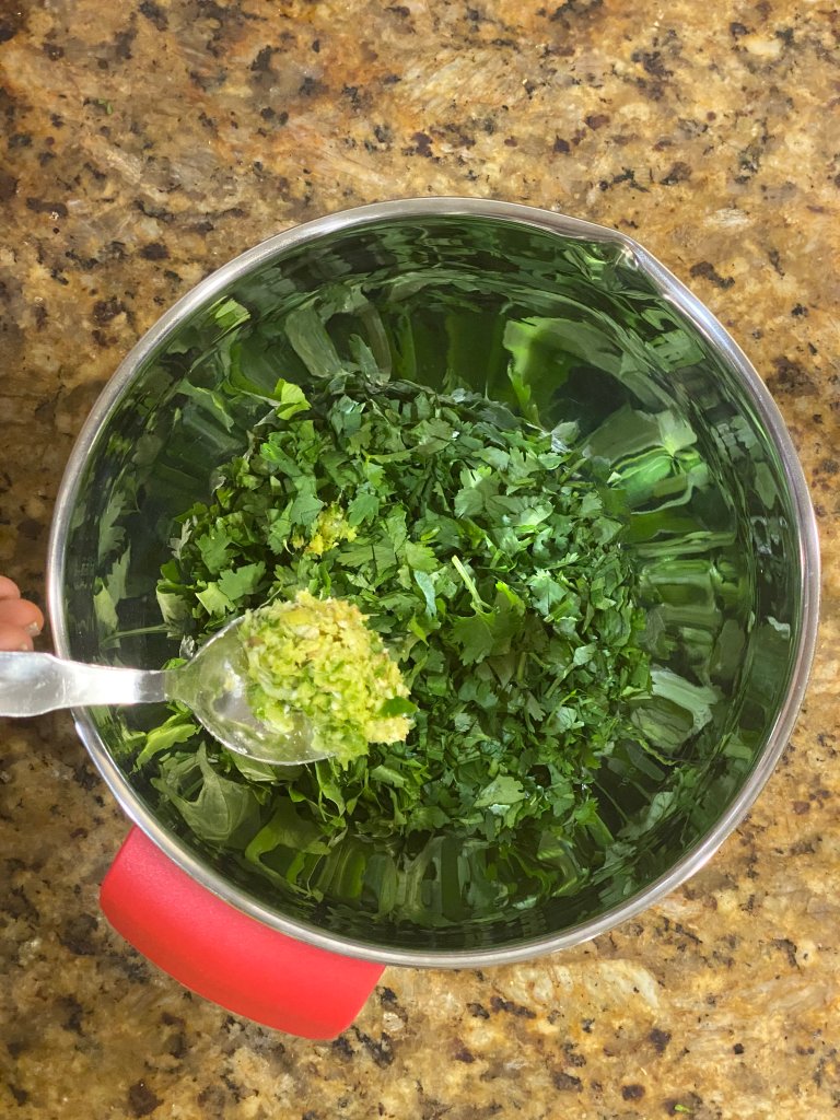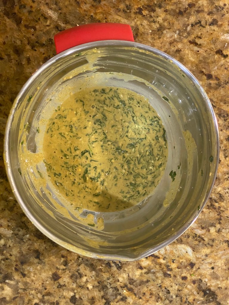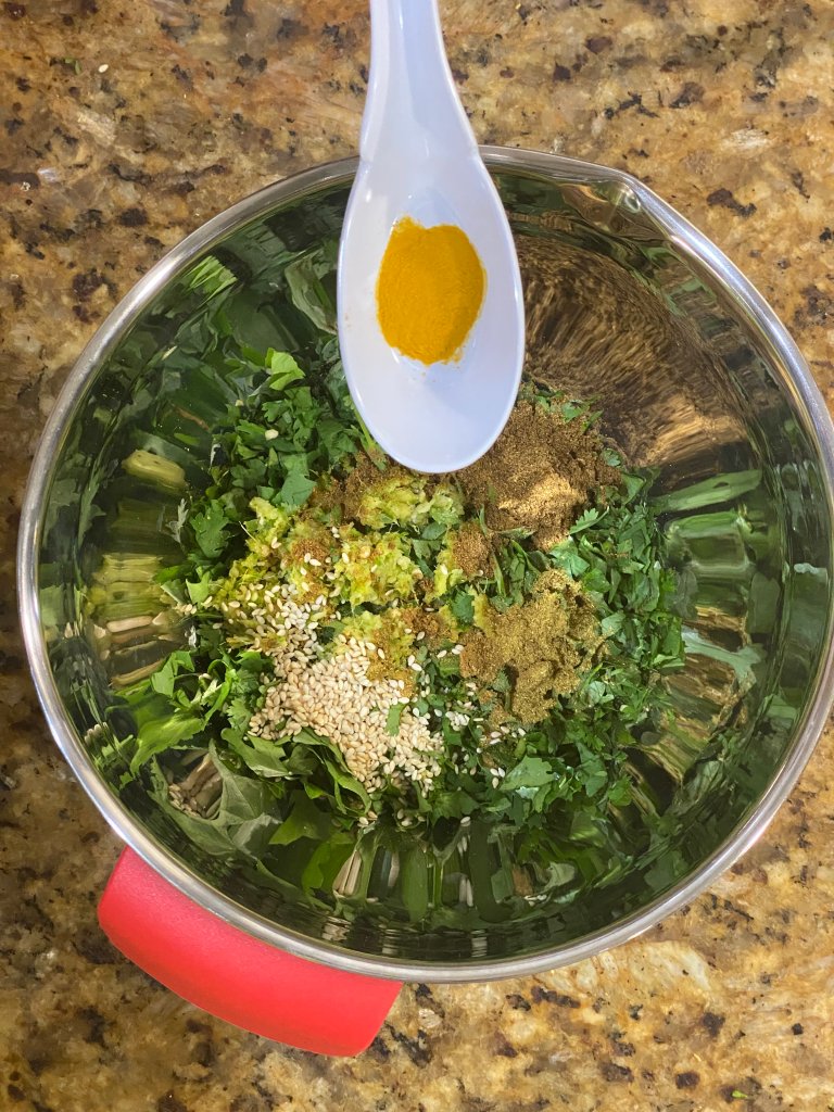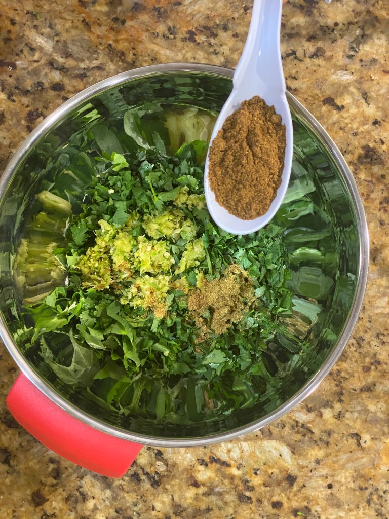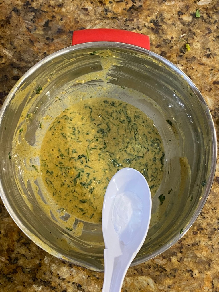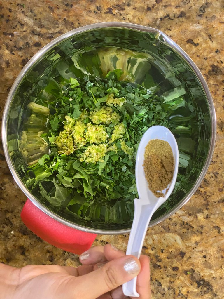 Now add besan and again mix well to form a batter (sprinkle some water if required).